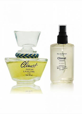 Ігристий і ніжний букет починається з верхньої ноти, що складається з альдегідів, бергамоту, персика та фіалки. Елегантне «серце» розкривається ароматами конвалії, жасмину та троянди. Ніжні базові ноти є сумішшю сандала, ветивера, амбри і бобів тонка. В результаті вийшов чуттєвий, пудровий та спокійний аромат. Елегантний Climat – це класика парфумерії. Мінливий, багатогранний аромат для жінки із загадкою.