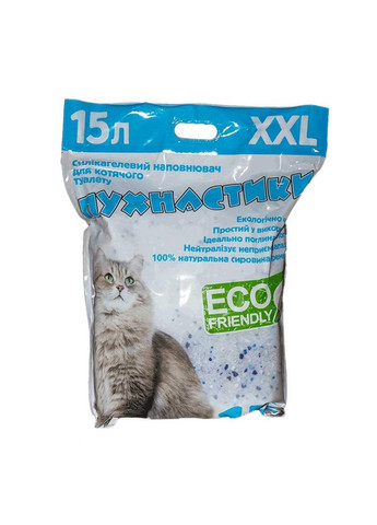 Гранульований наповнювач для котячого туалету Пухнастики 15 кг Переваги: Гранули наповнювача виготовлені з натуральної тирси. Завдяки ефірним маслам, якими багата деревина Європейської ялини, гранули Пухнастики мають протимікробну дію, що дозволяє зберігати Ваш будинок у чистоті та чудово боротися з неприємним запахом. Гранули виробляють шляхом пресування стружки деревини. При попаданні вологи гранули розпадаються та ефективно вбирають вологу, при цьому виділяється приємний ялиновий аромат. Контроль якості з боку виробника зводить до мінімуму наявність пилу в упаковці з наповнювачем. Діаметр деревних гранул - 6 мм, що дозволяє використовувати їх не тільки як наповнювач для туалету дорослих котів і кішок, але і для кошенят, а також як підстилки для дрібних гризунів, рептилій та птахів. Необхідно відзначити, що дерев'яні гранули Пухнастики виготовлені з натурального матеріалу, тому не містять мінерального пилу, який так небезпечний для дихальних шляхів не тільки тварин, але і людей. Гранули не токсичні та не викликають алергічних реакцій на шкірі у домашніх вихованців. Навіть якщо Ваш улюбленець ненароком проковтне кілька гранул, це абсолютно ніяк не позначиться на його здоров'ї. Зручність у використанні наповнювача Пухнастики полягає в тому, що його можна викидати в унітаз (він не забиває каналізаційні труби) або використовувати як добрива для рослин. Рекомендації щодо використання: Для гранульованого наповнювача деревини можна використовувати туалети як з сіткою, так і без неї. Очистіть туалет від забруднень, промийте і добре просушіть. Насипте наповнювач у туалет шаром 4-5 см. Змінюйте наповнювач не рідше 1 разу на тиждень. Використаний наповнювач можна викидати в унітаз або використовувати як добрива для рослин.