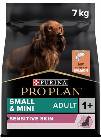 Purina Pro Plan. Сухий повнораціонний корм для цуценят малих порід з чутливою шкірою. Також підходить для вагітних та лактуючих собак. З лососем.