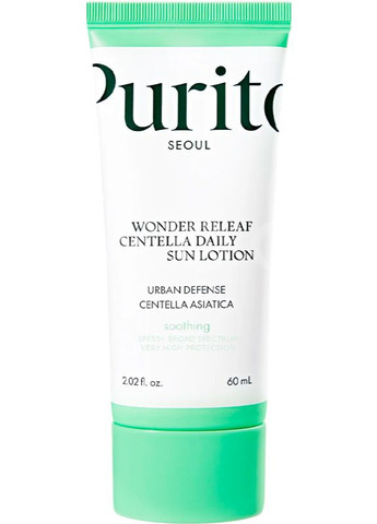 Purito Seoul Wonder Releaf Centella Daily Sun Lotion — легкий зволожувальний сонцезахисний лосьйон, призначений для чутливої шкіри. Забезпечує надійний захист широкого спектра SPF 50+ PA++++, а також зволожує та захищає шкіру від шкідливої дії навколишнього середовища, що підтверджено результатами клінічних досліджень. Підходить для будь-якого типу шкіру, зокрема, для чутливої. Має невагому текстуру без липкості, миттєво вбирається, залишаючи відчуття зволоження та свіжості. Основні компоненти: Центелла азіатська — компонент з потужними загоювальними властивостями, що допомагає швидко заспокоїти подразнену і запалену шкіру. Екстракт бурих водоростей — бореться із впливом навколишнього середовища, активно запобігає старінню шкіри та пошкодженню захисного бар’єра, а також сприяє здоровому тону обличчя. Гіалуронова кислота — підтримує оптимальний рівень зволоження шкіри та надає їй сяйва. Спосіб застосування: Щедро нанесіть крем на обличчя, шию та вуха за 15 хвилин до виходу на сонце. Не забувайте поновлювати захист кожні 2 години або після купання та рясного потовиділення. Склад: Water, Dibutyl Adipate, Propanediol, Dipropylene Glycol, Centella Asiatica Extract (30,108 ppm), Ethylhexyl Triazone, Terephthalylidene Dicamphor Sulfonic Acid, Isododecane, Niacinamide, Sorbitan Sesquioleate, Diethylamino hydroxybenzoyl hexyl benzoate, Tromethamine, Ecklonia Cava Extract, Hyaluronic Acid, Hydrolyzed Hyaluronic Acid, Hydrolyzed Sodium Hyaluronate, Sodium Hyaluronate, Potassium Hyaluronate, Hydroxypropyltrimonium Hyaluronate, Sodium Hyaluronate Crosspolymer, Sodium Acetylated Hyaluronate, Caprylyl Methicone, Glycerin, Bis-Ethylhexyloxyphenol Methoxyphenyl Triazine, Benzotriazolyl Dodecyl p-Cresol, Polysilicone-15, Polymethylsilsesquioxane, Silica, 1,2-Hexanediol, Glyceryl Stearate, Ammonium Acryloyldimethyltaurate/VP Copolymer, Cetearyl Alcohol, Hydroxyacetophenone, Potassium Cetyl Phosphate, Palmitic Acid, Stearic Acid, Polyacrylate Crosspolymer-6, Acrylates/C10-30 Alkyl Acrylate Crosspolymer, Caprylyl Glycol, Dipotassium Glycyrrhizate, Allantoin, Panthenol, Adenosine, Ethylhexylglycerin, Myristic Acid, Butylene Glycol, t-Butyl Alcohol