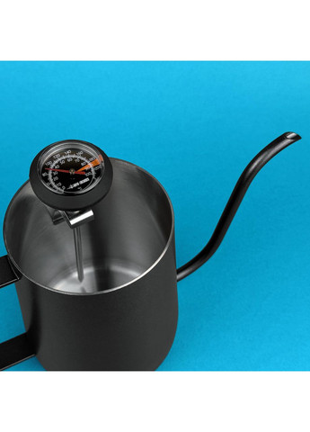 Механічний термометр з кріпленням MHW-3BOMBER — контроль температури під час заварювання Термометр із кріпленням — це зручний інструмент для тих, хто прагне точності у приготуванні кави та чаю. Завдяки біметалічному механізму та зручній кліпсі, він легко кріпиться до будь-якої ємності, забезпечуючи швидке та наочне вимірювання температури води або інших напоїв. Переваги: Знімна металева кліпса: Універсальне кріплення дозволяє закріпити термометр на чайниках, пітчерах, турках або інших ємностях. Інформативний циферблат: Шкала з кольоровими секціями дозволяє легко зчитувати температуру в потрібному діапазоні. Ідеально для заварювання кави та чаю: Дає змогу точно контролювати температуру води, що важливо для методів приготування, як-от пуровер, кемекс, френч-прес або матча. Характеристики: Тип: стрілочний (біметалічний) Матеріал щупа: нержавіюча сталь Довжина щупа: 10 см Ціна поділу: 1°C Діапазон вимірювання: 0–100°C Кріплення: знімна металева кліпса Шкала: Цельсій Простий, надійний та універсальний термометр для домашнього й професійного використання. Ідеально підходить для контрольованого заварювання кави, чаю або нагрівання рідин до потрібної температури. * Увага: чайник, зображений на фото, у комплект не входить.