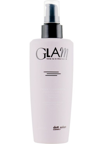 Для чарівної дівчини, яка прагне перетворити розпушене волосся, на слухняні шовковисті пасма, справжньою знахідкою стане інноваційний крем Dott. Solari Glam Illuminating Cream. Він відновлює оптимальний рівень зволоженості локонів, дбайливо пом'якшує і активно регенерує їх. Засіб збагачує завитки поживними речовинами і надійно захищає їх від несприятливої дії чинників довкілля. Він згладжує розпушені волосяні лусочки і запечатує посічені кінчики. Крім того, косметичний продукт завдяки вмісту мікроскопічних світловідбивальних часток дарує пасмам чудовий блиск. Він забезпечує локонам шовковисту гладкість і приємну пружність. Крем нейтралізує статичну напругу, перешкоджає сплутуванню волосся і робить антиоксидантний ефект. Спосіб застосування: розчиніть крем рівномірно на вологому волоссі перед сушкою. Не змивати. Стиль за бажанням.