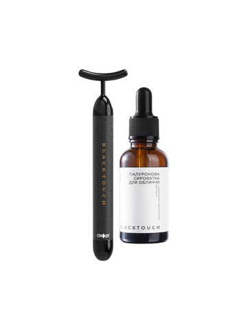 У комплекті вигідніше! Краса і молодість - ось ті два стовпи, на яких тримається вся індустрія шоу-бізнесу, моди і маркетингу. І хоча зараз, в двадцять першому столітті, вже помітні зрушення на користь демократії, і на обкладинках журналів стали поміщати плюс-сайз моделей і вікових актрис, все ж при вигляді нової зморшки на своєму обличчі розчаровується кожна дівчина. Однак є спосіб продовжити сяйво і юність своєї шкіри! Просто спробуйте доповнити свій щоденний догляд і скористайтеся цією відновлювальною сироваткою з ретинолом і вітаміном С BlackTouch rebuilding serum, яка забезпечить комплексний омолоджуючий догляд. Ваша шкіра сяє !! Найчастіше саме скутість лицьових м'язів призводить до передчасного виникнення зморшок. Запобігти або розгладити вже наявні мімічні зморшки допоможе BlackTouch T-Massager, в основі якого лежить вплив на шкіру сильного потоку високочастотних вібраційних коливань, в наслідок чого лицьові м'язи повністю розслабляються. Як результат - асиметрія обличчя вирівнюється, заломи зменшуються, що і дає нам ефект ліфтингу, гладкості та й свіжості шкіри обличчя. BlackTouch масажер виконаний зі сплаву латуні алюмінію. Переваги масажу: тонізує шкіру розслабляє затиснуті м'язи повертає природне сяйво і рум'янець підвищує пружність тканин посилює циркуляцію лімфи знімає набряклість обличчя прибирає темні кола під очима Як використовувати Це просто! Очистіть шкіру обличчя і шиї, нанесіть на обличчя і шию Rebuilding сироватку. Поверніть ковпачок масажера до вібрації. Починайте робити масаж від центру до периферії по масажних лініях кілька разів опрацьовуючи ті ж зони. Проводити масаж можна щодня!