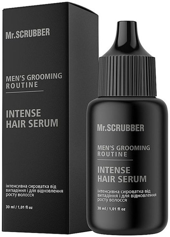 З випадінням стикався кожен. Незважаючи на те, що цей процес є природнім, шкіра голови потребує додаткової стимуляції для створення нового міцного волосся. Бренд Mr.Scrubber випустив інтенсивну сироватку на основі унікального розігрівального комплексу та екстракту кореня ірису флорентійського, яка сприяє посиленому притоку крові до шкіри голови, покращує живлення волосяної цибулини та активує синтез факторів росту. При регулярному використанні відбувається ревіталізація шкіри голови, завдяки чому ви не тільки відчуєте, але й побачите суттєві зміни. Особливості інтенсивної сироватки від випадіння Men`s Grooming Routine від Mr.Scrubber: - сироватка розігріває шкіру голови та активізує кровообіг;- екстракт кореня ірису зміцнює волосяні цибулини;- забезпечує візуальне збільшення густини волосся;- підтримує природний ріст волосся;- заспокоює шкіру голови;- усуває сухість та неприємні відчуття.