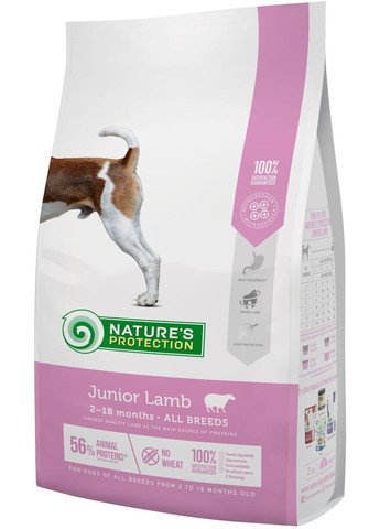 Це сухий корм, розроблений для зростаючих молодих собак (2-18 місяців). При виробництві не використовуються м'ясні субпродукти, тільки м'ясо - 59% інгредієнтів тваринного походження! М'ясо ягняти - основне джерело білка. Харчування на 100% відповідає вимогам молодого зростаючого організму. MicroZeoGen і різні харчові добавки підтримують захисні системи організму, здоров'я кісток і суглобів, стимулюють нарощування м'язової маси. Вивчіть особливості корму перед тим як Купити корм для цуценят з ягням Виготовлено на основі високоякісного м'яса ягняти без використання субпродуктів, завдяки чому корм привабливий на смак, легко перетравлюється і засвоюється Основне джерело білку обране таким чином, щоб знизити ймовірність виникнення харчової алергії у цуценят з чутливим травленням Містить вітаміни А, Е, D3, цинк, залізо, йод, селен і натуральні антиоксиданти, які захищають організм тварини від небажаних захворювань Ненасичені жирні кислоти Омега-3 і Омега-6 (включаючи DHA і EPA) допомагають запобігти проблеми з суглобами, знизити ризик появи дерматитів, зміцнити нервову систему, а також поліпшити якість шкіри і шерсті тварини Хондроїтин і глюкозамін грають роль будівельного матеріалу для створення здорової хрящової тканини цуценяти Бурякова м'якоть, що входить до складу, є відмінним джерелом клітковини і дуже корисна для бактерій, що підтримують здоров'я товстої кишки улюбленця З додаванням лляного насіння і екстракту цикорію, які м'яко стимулюють активність кишечнику Спеціальна добавка у вигляді мінералу MicroZeoGen сприяє кращому засвоєнню мікроелементів, виведенню токсинів і відмінному самопочуттю улюбленця З екстрактом юки Шидигера, який скорочує рівень азотних сполук, зменшуючи виділення шкідливих газів і неприємного запаху фекалій Всі інгредієнти корму сприяють твердим відходам невеликого об'єму Не містить пшениці Склад корму для собак Nature's Protection М'ясо ягняти 38% (висушене і подрібнене), рис, кукурудза, кукурудзяний глютен, пташиний жир, лігноцелюлоза, рибне борошно, насіння льону, динамічно мікронізований клиноптилоліт (1%), пивні дріжджі, екстракт цикорію, екстракт юки Вітаміни і мінерали: глюкозамін (250 мг/кг), хондроїтину сульфат (100 мг/кг), добавки на 1 кг: вітамін A - 22500 МО, вітамін D3 - один тисяча вісімсот сімдесят п'ять МО, вітамін E - 663 мг моногідрат сульфату заліза - 63 мг, безводний йодат кальцію - 1,9 мг, пентагідрат сульфату міді - 6,3 мг, марганець сульфат моногідрат - 25 мг, сульфат цинку моногідрат -144 мг, селеніт натрію - 0,13 мг, DL -метіонін, технічно чистий - 1 грам, L-триптофан - 500 мг, таурин - 125 мг. Технологічні добавки: екстракт розмарину, багаті токоферолом екстракти рослинних олій. Норми годування собаки Виробник на упаковці вказує норми годування тварини, відштовхуючись від ваги або віку вихованця і рівня його активності. Але завжди варто враховувати особливості вашого улюбленця. Тому краще обговорити добову потребу споживання корму з ветеринаром і погодити, наприклад, додатковий вологий прикорм, якщо він необхідний; Переходити на корм потрібно поступово. Упродовж кількох днів (до тижня) підмішуйте песику нове харчування у його звичне невеликими порціями, щоб його травна система звикла до нового складу. При поступовому переході можна виключити або мінімізувати розлади шлунково-кишкового тракту; В улюбленця завжди має бути доступ до чи