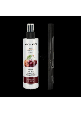 Аромат натхненний парфумами Lost Cherry Аромадифузору рефіл полонгує дію аромату, що сподобався, а спрей робить його універсальним в застосуванні. Аромат Мигдаль Вишня наповнює приміщення вишуканим бархатистим пряно-фруктовим та солодко-горіховим ароматом. Він створює атмосферу розкоші та чуттєвості. Його запах асоціюється з насолодою, витонченістю, романтикою і легкою ностальгією. Цей дифузор ідеально підійде для зали чи вітальні, додаючи затишок і романтичний настрій, а також можна використовувати в кабінеті, щоб створити творчу й натхненну атмосферу. Вишуканий аромат доповнює простір, підкреслюючи його елегантність. Дістати флакон з ароматичною рідиною з упаковки. Витягнути пластмасову пробку. Вставити палички у флакон з рідиною (з розрахунку - 1 паличка на 4-5 м2 приміщення). Рекомендуємо починати з 3-4 паличок та додавати їх за необхідністю. За добу палички промокнуть рідиною і природним шляхом випаровування наповнять приміщення приємним ароматом. З часом інтенсивність випаровувань буде зменшуватись, тому рекомендуємо перевертати палички один-три рази в тиждень.