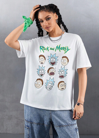 Футболка з довгими рукавами з малюнком Ріка та Морті. Футболка має вільний крій та рукави із заниженою лінією плеча. Вона включає тонку еластичну тканину і круглий виріз.