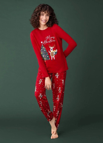 Колір Червоний / Матеріал Бавовна, Трикотаж / Візерунок Новорічний / Фасон рукава Вшитий
