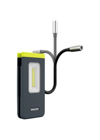 Світлодіодний ліхтар преміумкласу з кількома виходами Лінійка Philips Xperion 6000 Slim вирізняється високоякісними та яскравими світлодіодними ліхтарями, що підсвічують об’єкти за допомогою головного джерела освітлення із широким пучком високої яскравості 250лм в екорежимі та 500лм у посиленому режимі. Використовуйте точкове світло (150лм), щоб краще бачити навіть найдрібніші деталі. Тривалий час роботи в різних режимах освітлення Ліхтар Philips Xperion 6000 Slim завжди готовий до роботи. Одного заряджання вистачає на повний робочий день (до 7год в екорежимі, 4,5год у посиленому режимі та 9год із точковим променем). Завдяки потужній літій-іонній батареї Philips Xperion Slim можна повністю зарядити через USB-C за 4години й забезпечити собі яскраве світлодіодне освітлення. Точне, поворотне світло (на 270°) Philips Xperion 6000 Slim - це універсальний ліхтар, який ідеально підходить для освітлення вузьких місць. Завдяки унікальному світловому модулю, що обертається на 270°, можна легко розташувати світло там, де воно потрібне. Доступні декілька положень, які допоможуть вам працювати біля невеликих кутів. Цей інспекційний ліхтар складається наполовину для компактного зберігання. Розумний поворотний гачок із магнітом і ергономічним корпусом Завдяки продуманій конструкції ергономічної ручки з неслизьким покриттям ви надійно триматимете цей ліхтар. Якщо для роботи потрібні обидві руки, закріпіть його за допомогою висувного гака з можливістю обертання на 360° і сильним магнітом. Кнопку живлення розташовано на задній панелі, щоб світло не засліплювало вас, коли ви його вмикаєте. Стійкий до ударів, дії води та розчинників (IP54/IK07) Ліхтар призначено для роботи в складних умовах, тому він вирізняється ударостійкістю (IK07), водонепроникністю (IP54) та поверхнею, стійкою до дії хімічних речовин і розчинників у майстернях. Philips Xperion 6000 Slim розроблено для тривалого використання, адже ми знаємо, що навіть найупевненіші руки потребують додаткової підтримки