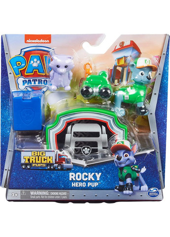 PAW Patrol, Big Truck Pups Rocky Action Figure with Clip-on Rescue Drone, Command Center Pod and Animal Friend Приєднуйтесь до команди PAW Patrol у захоплюючих рятувальних місіях і оживіть улюблені моменти з серії Щенячий патруль: Великі вантажні автомобілі. Кожна фігурка щеняти має реалістичні деталі та одягнена в уніформу великого вантажного автомобіля, з кепкою та рукавичками на передніх лапках, саме як у мультику. Коли настав час для захопливого рятування, закріпіть іграшку-дрон на рюкзаку щеняти, а потім натисніть на значок на її грудях, щоб запустити дрон і врятувати день. Всі набори включають тваринок для рятування, аксесуари та пульт керування з імітаційним екраном, який служить також як переносний контейнер для іграшок (наприклад, для гри в дорозі). Щоб отримати ще більше задоволення, зберіть усіх героїв, долучайте друзів до гри. У наборі 6 складових До складу набору входить: фігурка собачки, дрон, тваринка, рятувальний аксесуар, екран і контейнер з пультом керування. Запустіть рятувальний дрон Коли прийде час порятунку, прикріпіть іграшковий рятувальний дрон до рюкзака Роккі, а потім натисніть на його грудях значок, щоб запустити дрон і врятувати положення. Портативний контейнер для зберігання Після гри всі складові набору можна скласти всередину контейнера, закрити і взяти з собою будь-куди, щоб завжди бути на варті порядку.
