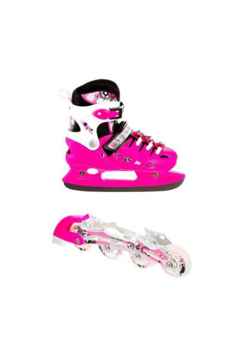 Ролики-ковзани Scale Sport 2in1. Рожеві (розмір 38-41) Ролики-ковзани Scale Sport - модель, що поєднує в собі дві функції: ролики та ковзани. У комплектації до роликів йдуть леза для катання на льоду. Для перетворення роликів на ковзани, необхідно за допомогою спеціальних ключів, що є в комплектації, відкрутити гвинти, і поміняти насадку (встановити леза для катання на льоду). Особливості: економічність використання за рахунок кнопкової системи регулювання на 4 повні розміри; надійність та безпека - за рахунок шнурівки кріплення на кліпсу AUTОLOCK та п'ятковий ремінь м'який матеріал черевика (присутність жорстких елементів для правильності стопи) - зручність та здоров'я сітчастий матеріал в основі черевика-вентиляція лезо - нержавіюча сталь гальма на роликах - додаткова безпека рама з алюмінію Тип: ролики-ковзани Вік: 10+ Колір рожевий Варіанти розмірів: 38 – 41 Колеса, що світяться: ні Тип коліс: PU безшумні м'які Діаметр коліс: 24 мм (підшипники ABEC 7) Жорсткість коліс: 82А Основа рами: алюміній Китай
