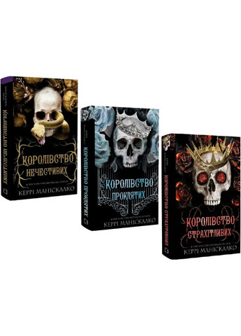 Опис: Королівство Нечестивих. Книга 1 Емілія та її сестра-близнючка Вітторія — відьми, які таємно живуть серед людей. Одного вечора Вітторія не з’являється на родинну вечерю. І незабаром Емілія знаходить тіло дорогої сестри неймовірно понівеченим. Спустошена Емілія затялася відшукати вбивцю близнючки і помститися за будь-яку ціну, навіть якщо для цього доведеться вдатися до темної магії, яку давно заборонено. Іще в дитинстві бабуся застерігала дівчаток не бавитися чорною магією і не мати жодного стосунку до потойбіччя. Утім близнючки до неї не дослухалися. Емілія здійснює магічний ритуал викликання князя пекла, і до неї з’являється Гнів — один із Нечестивих. Від нього дівчина дізнається, що господар доручив йому розкрити серію жіночих убивств, що і далі тривають на острові. Хто ж той загадковий убивця, який полює на відьом-незайманок? Із ким іще з князів темряви має зіткнутися Емілія, щоб помститися за жорстоке вбивство Вітторії? І до чого тут Ріг Аїда, який відмикає ворота пекла? Королівство Нечестивих. Книга 2. Королівство Проклятих Емілія присягається зробити все, щоб помститися за жахливе вбивство любої сестри-близнючки Вітторії. Тож продає душу дияволу, зголошуючись стати королевою Нечестивих і взяти шлюб із князем Гординю. На шляху до обітниці вона долає Коридор гріхів і піддається спокусливим фантазіям щодо обіймів Гніва. Та попри приязнь до князя-супровідника, Емілія все ж заміряється вручити себе самому дияволу, як і заповідалося. Утім іще має засвоїти низку правил обходження в королівстві Нечестивих, яке нині стає її новим прихистком. Тут не можна нікому довіряти. Адже серед підступних демонів-гріхів, розкішних палаців, таємничих запрошень на вечірки та суперечливих доказів того, хто насправді скривдив сестру, Емілія почувається вкрай самотньою і беззахисною. Чи може вона довіряти Гніву, своєму колишньому союзнику у світі смертних? І які небезпечні таємниці про свою справжню природу він зберігає? Королівство Нечестивих. Книга 3. Королівство Страхітливих Емілія не може отямитися після шокуючого викриття про свою сестру Вітторію. Та перш ніж зіткнутися з демонами свого минулого, вона прагне завоювати свого короля, спокусливого князя Гніва. Вона прагне не лише його тіла, а й серця та душі. Утім цей демон не може їй цього пообіцяти, бо має свої секрети, відомі лише його братам. Емілія та Гнів грають у гріховну гру обману, щоб розкрити загадкове вбивство, у якому звинувачують Вітторію. Між відьмами, демонами, перевертнями й Нечестивими назріває протистояння, яке може спалахнути кровопролитною війною і загрожує знищити пекло. Емілію застерігали: коли заходиться про потойбіччя, то ніщо не є таким, як видається. Тож постає питання: чи всі, хто перебуває в пеклі й постійно плете інтриги довкола юної відьми, насправді прокляті лиходії? «Королівство Страхітливих», ця романтична історія із сексуальними таємницями й несподіваним поворотом сюжету, завершує динамічну серію книг Керрі Маніскалко під назвою «Королівство Нечестивих». Формат 135x205мм