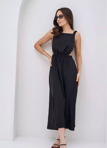 !!!ПЕРЕД ЗАМОВЛЕННЯМ ОЗНАЙОМТЕСЬ З ЗАМІРАМИ НИЖЧЕ!!! ЗАМІРИ ЗРОБЛЕНО БЕЗПОСЕРЕДНЬО ПО ВИРОБУ!!! Сукня жіноча стильна літня, виріз горловини - V-подібний, сезон - літній, стиль - ошатний, колір - чорний, тканина - шовк Армані, силует - приталений, довжина моделі - міді довжина рукава - без рукавів. Чорне шовкове плаття - це втілення елегантності і вишуканості. Його довгий приталений силует ідеально підкреслює фігуру, створюючи витончений і жіночний образ. якості тканини та ідеальної посадки, а чорний колір додає глибини та універсальності, підходячи для різних заходів — від вечірніх прийомів до романтичних вечерь.