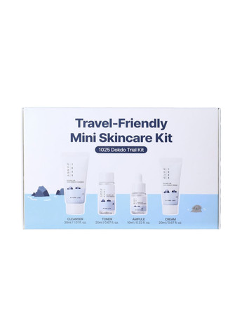Набір мініверсій засобів з морською водою ROUND LAB 1025 Dokdo Trial Kit, 30мл+20мл+10мл+20мл ROUND LAB 1025 Dokdo Skin Care Trial Kit — сет мініатюр продуктів з лінійки 1025 Dokdo з морською водою. Поповнити нестачу вологи та забезпечити шкірі ніжну та делікатну турботу допоможе набір зволожуючих засобів ROUND LAB 1025 Dokdo Skin Care Trial Kit. Він складається з чотирьох продуктів, які чудово зволожують і живлять втомлену та зневоднену шкіру. М’яка пінка для вмивання з морською водою ROUND LAB 1025 Dokdo Cleanser (30 мл) підходить для делікатного очищення навіть чутливої та сухої шкіри. Ніжно видаляє всі забруднення, залишки макіяжу та мікропил, не провокує появу сухості та стягнутості, зберігає шкіру зволоженою навіть після вмивання. Слабокислотна пінка має нейтральний рН, м’яко впливає на поверхню шкіри та захищає від агресивного впливу проточної води. Тонер ROUND LAB 1025 Dokdo Toner (20 мл) з ефектом легкого пілінгу на основі глибоководної морської води з острова Улліндо, відмінно зволожує, заспокоює і насичує шкірний покрив корисними поживними речовинами, ніжно відлущує ороговілі частинки і запобігає надмірному виробленню себуму, зменшує жирність шкіри. Концентровану сироватку Round Lab 1025 Dokdo Ampoule (10 мл); Зволожуюча сироватка для чутливої шкіри Round Lab1025 Dokdo Ampule наповнює шкіру живильною вологою робить її пружною та еластичною. В основі формули глибинна морська вода з острова Улиндо, що містить 72 види корисних мінералів (включаючи магній, кальцій, цинк та інші), багата на макро- та мікроелементи, завдяки чому не тільки підтримує здоров’я шкіри, але також глибоко зволожує та зміцнює імунітет епідермісу. Сироватка підходить для всіх типів шкіри, включаючи чутливий. Крем Round Lab 1025 Dokdo Cream (20 мл) Зволожуючий крем з морською водою Round Lab 1025 Dokdo Cream інтенсивно зволожує вашу шкіру протягом 24 годин, зміцнює бар’єр шкіри та усуває сухість. Крем має зволожуючу текстуру бальзаму, при нанесенні утворює вологу захисну плівку на шкірі. Склад засобу збагачений глибинною морською водою з острова Уліндо, що містить 72 види корисних мінералів, включаючи магній, кальцій, цинк та ін, багатий макро- та мікроелементами, завдяки чому не тільки підтримує здоров’я шкіри, але також глибоко зволожує та зміцнює епідерміс. Спосіб застосування: Пінка: невелику кількість засобу злегка вспіньте у долонях. Нанесіть на вологу шкіру та помасажуйте круговими рухами. Після змийте пінку теплою водою. Тонер: після очищення шкіри нанесіть невелику кількість тонера на долоні. Розподіліть засіб по шкірі. Сироватка: Нанести 2-3 краплі сироватки на очищену та тонізовану шкіру. Поступово розподілити, уникаючи шкіру навколо очей. Крем: Нанесіть невелику кількість крему на шкіру, м’якими, масажними рухами на останньому етапі догляду за шкірою. Склад: Пінка: Water, Sodium Cocoyl Isethionate, Glycerin, Sodium Methyl Cocoyl Taurate, Coco-Betaine, Potassium Cocoyl Glycinate, Potassium Benzoate, Sodium Chloride, Polyquaternium-67, Potassium Cocoate, Citric Acid, Fructooligosaccharides, Saccharide Hydrolysate, Disodium EDTA, Pullulan, 1,2-Hexanediol, Allantoin, Panthenol, Sea Water, Sodium Acetate, Butylene Glycol, Anthemis Nobilis Flower Oil, Caprylic/ Capric Triglycerides, Beta-Glucan, Phosphatidylcholine, Hyaluronic Acid, Ethylhexylglycerin, Ceramide NP, Glycine, Hydrolyzed Hyaluronic Acid, Glutamic Acid, Serine, Sodium Hyaluronate, Lysine, Alanine, Arginine, Threonine, Proline Тонер: Purified Water, Butylene Glycol, Glycerin, Pentylene Glycol, Propanediol, Chondrus Crispus Extract, Sugar Cane Extract, Sea Water, 1,2-Hexanediol, Protease, Betaine, Panthenol, Ethylhexylglycerin, Allantoin, Xanthan Gum, Disodium EDTA Сироватка: Purified Water, Butylene Glycol, Glycerin, Dipropylene Glycol, Propanediol, 1,2-Hexanediol, Sea Water, Hydrolyzed Hyaluronic Acid, Hydrolyzed Collagen, Panthenol, Chondrus Crispus Extract, Sugarcane Extract, Tromethamine