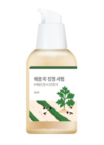 ROUND LAB MUGWORT Calming Serum — заспокійлива концентрована сироватка з антиоксидантами для подразненої, чутливої та схильної до акне шкіри. Має легку освіжаючу водянисто-флюїдну текстуру, швидко вбирається та залишає шкіру зволоженою. Основні компоненти: Екстракти морського полину та листя полину з архіпелагу Геомундо — багаті на вітаміни А, B, бета-каротин. Допомагають зняти свербіж, зменшити активність сальних залоз, а також надають бактерицидний та заспокійливий ефект. Комплекс 4-cica (мадекасосидова кислота, мадекасосид, азіатиказидова кислота, азіатикозид) — здатні заспокоювати подразнення, підсилювати захисний бар’єр шкіри, знижувати запалення, стимулювати синтез колагену. Гіалуронова кислота, пантенол та бетаїн — допомагають ефективно зменшувати подразнення та зволожувати шкіру. Спосіб застосування: Нанесіть сироватку легкими масажними рухам на шкіру, зволожену тонером. Склад: Water, Glycerin, Propanediol, Betaine, Butylene Glycol, 1,2-Hexanediol, Pentylene Glycol, Artemisia Vulgaris Extract(10,094ppm), Panthenol, Allantoin, Madecassoside, MadecassicAcid, Asiatic Acid, Asiaticoside, Chlorella Vulgaris Extract, Artemisia Princeps Leaf Extract(240ppm), Sodium Hyaluronate, Camellia Sinensis Leaf Extract, Salvia Officinalis (Sage) Oil, Theobroma Cacao (Cocoa) Seed Extract, Glucose, Polyglyceryl-10 Laurate, Fructooligosaccharides, Fructose, Ethylhexylglycerin, Tromethamine, Sodium Phytate, Dextrin, Tocopherol, DipropyleneGlycol, Carbomer