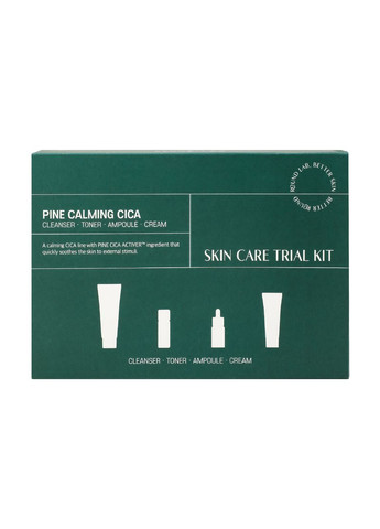 ROUND LAB Pine Calming Cica Trial Kit — сет мініатюр продуктів з лінійки Pine Calming Cica із запатентованим комплексом Pine Cica Activer™ з екстрактом голок сосни та центелли. Містить 4 позиції: пінка для умивання ROUND LAB Pine Calming Cica Cleanser (30 мл); тонер ROUND LAB Pine Calming Cica Toner (20 мл); концентровану сироватку ROUND LAB Pine Calming Cica Ampoule (10 мл); крем ROUND LAB Pine Calming Cica Cream (20 мл). Продукти створені для швидкого заспокоєння та підтримки схильної до подразнень, запалень та висипань шкіри. Pine Calming Cica Trial Kit чудово підійде для знайомства з лінійкою Pine Calming Cica або як компактний сет для подорожей.