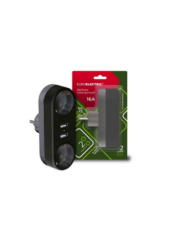 Мережевий двійник EUROELECTRIC із заземленням розрахований на максимальну потужність 16А/3500Вт. Корпус виконаний з удароміцного та негорючого пластику (полікарбонат). Модель двійника на 16А дозволяє підключити потужні побутові прилади загальним навантаженням до 3500Вт, а також використовувати два USB порти Type-A з вихідним струмом 5V, 2.1А для зарядки гаджетів. Ступінь захисту IP20. Температурні обмеження зберігання від -25°C до +40°C Напруга, V: 220-250 Пило-волого захист, IP: 20 Матеріал: Полікарбонат / ABS-пластик Гарантійний термін: 2 роки Колір: Чорний Робоча температура, С°.: -20 +40 Номінальний ток, А: 16 USB порт: 2шт, Type-A, 5V/2.1A Розетки, шт.: 2 Максимальне навантаження, Вт: 3500 Розміри, мм H D.: 130 37 45 Штрих код упаковки: 4262380663039