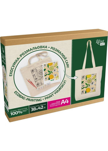 Екосумка ROSA Talent — це творчий набір, створений для комфортного та захопливого розпису. Сумка виготовлена зі 100% бавовняної тканини щільністю 220 г/м?, має розмір 38х42 см та міцні ручки 60х2,5 см, здатні витримувати навантаження до 15 кг. На поверхню вже нанесено контур малюнка, тому процес стане легким навіть для тих, хто вперше розписує тканину. Набір містить усе, що потрібно для роботи: акрилові фарби для тканин ROSA Talent, художні пензлі, кольорову схему, а також прозорий пакет. Виробник подбав про те, щоб творчий процес був максимально зручним, тож достатньо підготувати освітлене місце, захистити поверхню та проглянути інструкцію. Під час розпису важливо розмістити файл усередині сумки, аби фарба не перейшла на інший бік, добре перемішувати фарби та ретельно промивати пензлі під час зміни кольорів. Після завершення роботи сумку потрібно залишити висихати 48 годин, а потім зафіксувати малюнок праскою без пари при температурі 30–40°C, прасуючи кожну ділянку приблизно 5 хвилин. Прати розписану сумку рекомендовано не раніше ніж через 48 годин. Підходить ручне або делікатне машинне прання при температурі до 40°C із м’якими засобами. Важливо врахувати, що вироби з бавовни можуть давати легку усадку. Цей набір стане чудовим вибором для тих, хто цінує натуральні матеріали, турбується про довкілля та хоче створити стильний, практичний і унікальний аксесуар власними руками. Характеристики: Вага товару: 0,3 Стан: нове Вікова група: від 9 років Матеріал: Комбінований Тип: Сумка-розмальовка Колір: Різні кольори Упаковка: Картонна коробка Вік: Від 9-ти років Гарантія: 14 днів Стать: Унісекс Країна реєстрації бренду: Україна Країна-виробник товару: Україна