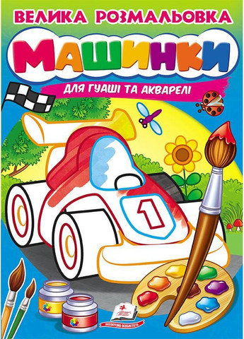 Велика розмальовка. Машинки. Малюємо пензликами Для гуаші та акварелі