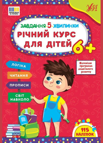 Шукаєте збірник розвивальних завдань для дитини на цілий рік? Книжка «Річний курс для дітей 6+» — це ідеальний варіант, що відповідає програмам дошкільного розвитку та містить річний курс для дітей від 6 років. Видання охоплює чотири ключові напрями підготовки: логіку, читання, прописи та пізнання навколишнього світу. Виконуючи цікаві ігрові завдання, дитина розвиватиме логічне мислення, увагу та пам’ять; покращуватиме мовленнєві навички, навчаючись читати слова, словосполучення, речення та прості тексти. Водночас вона удосконалюватиме дрібну моторику, обводячи по пунктиру лінії, фігури, цифри й букви. Також книга допоможе дитині орієнтуватися в просторі та збагатить знання про навколишній світ: овочі, фрукти, тварин, рослини, транспорт, місяці, пори року, корисне дозвілля, здорове харчування, правила безпеки та дорожнього руху. Завдання з наліпками зроблять процес навчання цікавим, додаючи елемент гри та різноманітності!