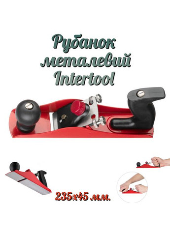 Рубанок необхідний для оброблення твердих порід деревини. Дає змогу отримати гладку поверхню, зрізаючи всі надлишки та нерівності на поверхні матеріалу. Корпус рубанка металевий. Розміри: 235x45 мм; Матеріал корпусу: метал