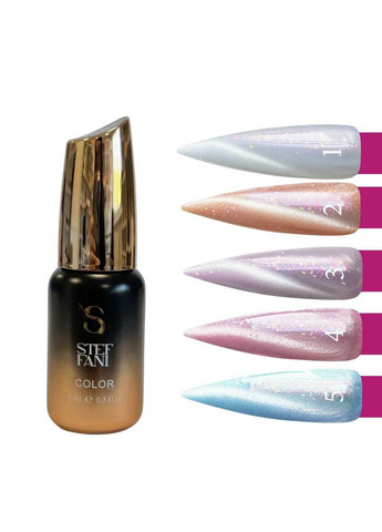 Гель-лак для нігтів Steffani Cat Eye Euphoria, 9 мл Колекція гель-лаків Euphoria Cat Eye від Steff - це 5 унікальних відтінків з ефектом котячого ока і дрібних глітерних блискіток, що поєднують витонченість і загадкове мерехтіння. Завдяки спеціальним магнітним пігментам створюється ефект сяйва, подібний до гри відблисків граней дорогоцінних каменів. Глибина мерехтіння змінюється залежно від освітлення та кута зору, Кожен гель-лак Cat Eye - це тисячі найдрібніших металевих частинок, які активуються магнітом. Це дає змогу створювати ефектні візерунки з чарівним блиском. Високий рівень пігментації забезпечує щільне покриття вже з першого шару, не вимагаючи додаткових кольорових підкладок. Це робить роботу майстра більш швидкою та зручною. Переваги колекції: Формула середньої густоти з ефектом самовирівнювання. Не потребує чорної підкладки. Може використовуватися як самостійне покриття або в поєднанні з іншими відтінками. Створює модний ефект котячого ока, який дарує манікюру загадковий шарм і магнетизм. Як наносити: На попередньо зашліфовану й очищену поверхню нігтя нанесіть Steff Dehydrator тонким шаром. Для кращого зчеплення матеріалу використовуйте Steff Ultrabond Primer, наносячи його один раз. Покрийте нігті базою Steff Rubber Base або полімеризуйте в LED/UV лампі потужністю 48W близько 30 секунд. Нанесіть Steff Cat Eye Gel Polish в 1-2 шари, сформуйте відблиск за допомогою магніту і просушіть в LED/UV лампі 48W протягом 60-120 секунд. Завершіть покриття улюбленим топом Steff Top і зафіксуйте результат, просушивши в лампі 48W протягом 60 секунд. Об'єм: 9 мл