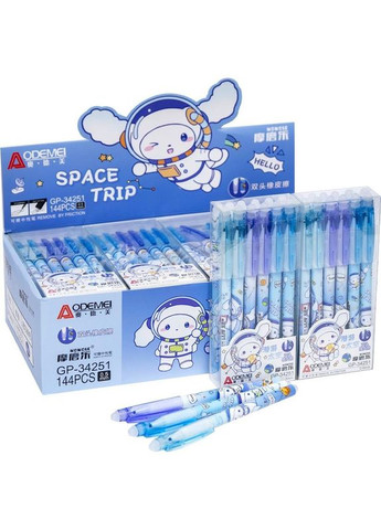 Ручка гелева "пише-стирає". Пластиковий кольоровий з малюнком корпус. Товщина 0,5 мм. Змінний стрижень. Колір синій.