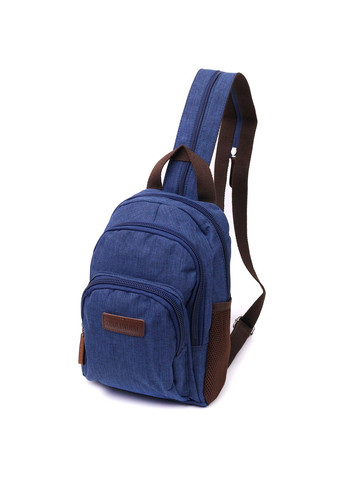 Матеріал: поліестер; Колір синій; Розміри (ШхВхГ, см): 19х28х10 см; Країна виробник: Китай; Бренд: Vintage. Опис: - одне основне відділення на блискавці; - відкрита кишеня та потайна кишеня на блискавці всередині; - дві накладні кишені, різних розмірів, що закриваються на блискавці, на лицьовій стороні; - дві сітчасті бічні кишені; - вертикальна кишеня, що закривається на блискавку, на тильній стороні; - ручка для носіння в руках; - текстильні регульовані плечові ремені, що з'єднуються блискавкою; - підкладка із коричневої тканини. Міський рюкзак компактного розміру на кожен день із міцного поліестеру. Має простий дизайн, безліч кишень різних за розміром, носити цю модель можна в руці, на спині, а також як рюкзак-сумку через плече. В аксесуарі використано якісну фурнітуру, яка прослужить Вам не один рік. Варто також відзначити, що модель зовсім невибаглива у догляді та легко стирається. Рюкзак з регульованими текстильними лямками. Якщо вам потрібен якісний рюкзак не один рік рекомендуємо вам цю модель.
