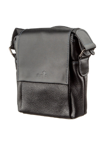 Матеріал: натуральна шкіра; Розміри (ШхВхГ, см): 19х23х6; Колір чорний; Країна виробник: Україна. Всередині: - 2 відкритих накладних кишені для телефону; - ущільнене відділення з кишенею-перегородкою на блискавці; - потайну кишеню на блискавці; - незнімний текстильний ремінець; - шкіряна ручка для носіння в руці; - відкритий накладна кишеня під клапаном на лицьовій стороні всередині якого петля для ключів; - кишеня на блискавці на тильній стороні. Оригінальна сумка для самих впевнених в собі чоловіків. Модель виконана в комбінації шкіри флотар і матовою. На таку сумку буде складно не звернути увагу. По краях аксесуар прошитий світлої синьою ниткою. Весь функціонал до дрібниць продуманий для сучасних чоловіків, які цінують якість і комфорт. Сумка доповнена ручкою, як на плече, так і в руку, що робить її ще більш зручною. Усередині синій якісний подклад з міцного текстилю. Якщо ви вибирає