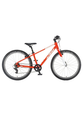 KTM Wild Cross 24 " - це перший крок вашої дитини до незалежності як від батьків, так і від доріг. Wild Cross - це досить унікальна модель підліткового велосипеда класу гібрид або як його ще називають - крос. Такий байк поєднує в собі атрибути Гірського і шосейного типу, а значить ваша дитина зможе пересуватися як по місту, так і по пересіченій місцевості. Рама зроблена з алюмінію, склад якого передбачає в собі крім самого алюмінію: магній, кремній і мідь, що в результаті дає неперевершені міцнісні та вагові характеристики за адекватну ціну, а це дуже великий плюс, як для підліткового байка. Внизу на рамі присутній посадочне місце під питну флягу з флягодержателем, або для кріплення під насос. Алюмінієва ригідна вилка робить байк легким на ходу через відсутність розгойдування, яка завжди виникає на амортизаторах, навіть якщо вони мають спеціальні протидіючі системи. Така вилка також робить дитину більш спритним, а сам байк стає більш керованим. Якщо дивитися з боку підлітків, які ще не вміють ідеально їздити, така вилка здатна надати правильне відчуття їзди і підвищити рівень навичок. Адже на відміну від амортизаційних вилок, з ригидной моделлю потрібно бути в рази уважніше. Трансмісія на 7 швидкостей зібрана на базі заднього перемикача Shimano RD-TY200-SS, тріскачки Shimano MF-TZ510-7 і шифтеров SL-RV200-7R. Перемикач ідеально підходить для підліткового байка, так як забезпечує якісне і точне перемикання навіть в складних погодних умовах. Корпус виготовлений з алюмінієвого сплаву, а рамка з міцної сталі, настройка ведеться за допомогою двох болтів. Ергономічні Шифтери мають функцію індексного перемикання з легким поворотом зап'ястя. Муфта вільного ходу має більш високу стійкість до корозії на відміну від попередніх версій, забезпечуючи надійне перемикання в різних погодних умовах. Підвищувати і знижувати передачі можливо відразу на кілька рівнів, а дізнатися, на якій передачі система можна лише глянувши на покажчик. Ободні гальма Tektro TS325-A - це модель, яка найбільш добре себе показує на дитячих і підліткових велосипедах. Важелі мають конструкцію, оптимізовану під ідеальне гальмування на невеликих колесах (20" - 24"). Завдяки регулюванню ручки, можна точно відрегулювати пристрій в сторону чутливості і стабільності. Ободні гальма дуже невибагливі і прості у використанні, колодки взаємозамінні, що дає можливість змінити їх практично на будь-яку іншу пару, а саму систему, в разі пошкоджень, можна відремонтувати навіть в польових умовах. Передня втулка KT-A1GF і задня KT-A11R зібрані на алюмінієвих кулькових підшипниках. Підшипники надійно закриті від зовнішніх подразників, забезпечуючи хороші характеристики зносостійкості і накату. Обода виконані з алюмінію, обробленого на верстаті з ЧПУ, що дозволило домогтися високої точності і надійності. Покришки Schwalbe Black Jack забезпечують відмінне зчеплення з грунтами в силу агресивних шипованих протекторів, а антипрокольний шар k-Guard армований кевларовим волокном забезпечує захист колеса від пробиття протягом усього шляху. Клас навантаження і застереження: KTM Wild Cross 24 " підходить для руху по асфальту, велосипедних доріжках, путівцях з твердим покриттям або гравійної насипом, а також по пересіченій місцевості з помірними підйомами і спусками. Пам'ятайте, стрибки не повинні перевищувати висоту в 15 см. Максимальне вагове навантаження 
