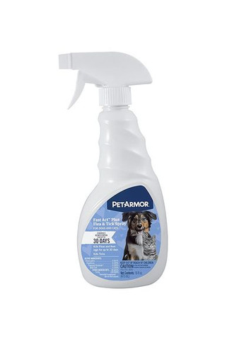 Спрей PetArmor Fastact Plus – це ефективний засіб для собак і кішок, який не тільки вбиває і відлякує дорослих бліх та кліщів під час контакту, але також вбиває яйця бліх, запобігаючи повторному зараженню бліхами терміном до 30 днів, підтримуючи здоров'я та комфорт вашого улюбленця. . Основна перевага використання спрею PetArmor Fastact Plus - це його практично миттєвий захист собаки або кота від бліх та кліщів. Як тільки спрей висохне на шерсті, а це 5-7 хвилин, улюбленець вже оброблений від паразитів. Інші засоби від бліх та кліщів (краплі, таблетки, шампуні) дають захист від паразитів лише через 24-48 годин після нанесення. ВАЖЛИВО! Щоб не послабити захисні властивості спрею, купайте вихованця лише з м'яким безсульфатним шампунем. Переваги спрею від бліх та кліщів для собак та кішок PetArmor Fastact Plus: ефективний швидкодіючий засіб у боротьбі з ектопаразитою; діє відразу після висихання, час висихання спрею 5-7 хвилин. Не витирайте кота чи собаку рушником!; вбиває бліх, яйця бліх та кліщів під час контакту; контролює повторне зараження бліхами та кліщами протягом 30 днів; полегшує догляд за шерстю: робить шерсть гладкою та блискучою, полегшує розчісування; містить ПІРЕТРИН - натуральний інсектицид контактної дії, що швидко всмоктується в організм комахи і вражає нервову систему, порушуючи процес передачі нервових імпульсів. Через це нерв згоряє і відбувається майже миттєвий параліч комах (нокдаун-ефект); містить ПІРОПРОКСИФЕН – регулятор росту комах, що перешкоджає розвитку яєць та личинок у дорослих бліх; містить ПІПЕРОНІЛ БУТОКСИД і N-ОКТИЛ БІЦИКЛОГЕПТЕН ДИКАРБОКСИМІД, що посилюють ефективність піретринів; легко наносити, просто застосовувати; може використовуватися для комплексного захисту вихованця від бліх та кліщів спільно з іншими засобами, де в основі ІНШИЙ склад активних інгредієнтів; універсальний для собак та кішок, цуценят та кошенят від 12 тижнів. ІНСТРУКЦІЯ 1. Перед використанням збовтати! 2. Тримайте контейнер вертикально. Розбризкуйте з відстані 20-30 см проти зростання вовни. Уникайте потрапляння спрею у вічі, морду чи геніталії тварини. 3. Під час розпилення піднімайте шерсть, щоб спрей добре змочив шерсть і просочився у шкіру. 4. Вага тварини, довжина та структура вовни впливають на кількість спрею, що потрапляє у шкіру. 5. Середня доза спрею - близько 7,5 г/кг для собак і 5 г/кг для кішок. Місткості об'ємом 473 мл має вистачити на 3 обробки улюбленця вагою 13-15 кг або на 20 обробок - вагою 4,5 кг. 6. Не обробляйте улюбленця спреєм від бліх та кліщів частіше, ніж 1 раз на 14 днів. 7. Якщо наносити PetArmor Fastact Plus поверхнево та слабко, то термін ефективності захисту може скоротитися, що призведе до повторного зараження паразитами та потреби у частішій повторній обробці. 8. Після нанесення спрею просушіть тварину на повітрі або феном. Не сушіть кота чи собаку рушником! 9. Щоб не послабити захисні властивості спрею, рекомендується купати вихованця лише з м'яким безсульфатним шампунем. ЗБЕРІГАННЯ Зберігати у щільно закритій оригінальній упаковці у прохолодному (до 25°C) сухому місці, недоступному для дітей та тварин. Не допускати потрапляння прямих сонячних променів в упаковку. Упакування не використовувати повторно.