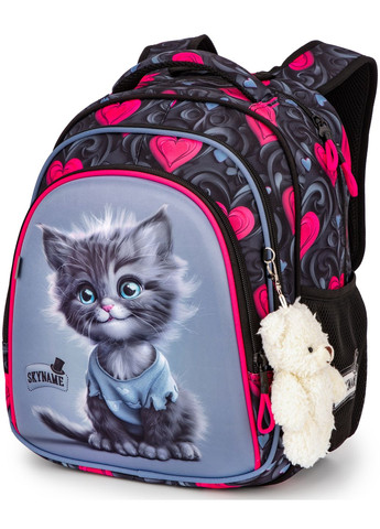 Ортопедичний рюкзак для дівчинки з Котиком SkyName 37х30х18 см для молодших класів (R2-223) Форма: Дитячий рюкзак. Відділення: У рюкзаку три відділення. Перше основне відділення (біля спинки) без наповнення. Друге відділення – без наповнення. Третє відділення з органайзером для письмового приладдя, оздоблене об'ємною 3D картинкою. Кишені: З боків дві кишені-сіточки на гумці. У комплекті: Бірка з індивідуальним штрих-кодом та описом. Брелок-ведмедик (для дівчинки). Має ряд якісних та зручних деталей: Якісні блискавки фірми «SBS» + фірмові бігунки та фурнітура. Додатковими рядками для зміцнення прошиті всі місця, на які припадають основні навантаження. Вентильована спинка. Плечові вентильовані лямки з грудним кріпленням. Світловідбивні елементи розташовані на передній, задній та бічній частині рюкзака, для забезпечення безпеки у темний час доби. Верхня зручна тканинна ручка для перенесення рюкзака.