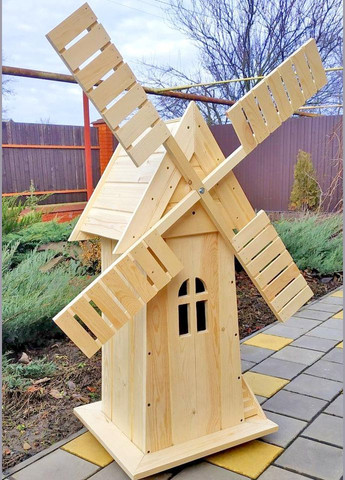 Декоративний млин чудово розбавить ландшафт в сільському стилі, в якому присутні лавки, паркани, візки, а може бути навіть ставок.