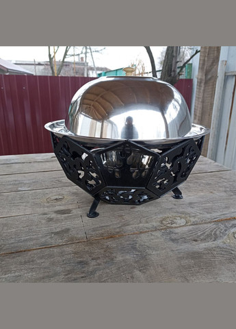 Садж для підігріву страв, приготованих на мангалі. Збереже аромат і тепло Вашого мяса і овочів. З такою стравою на столі Ви здивуєте своїх гостей і близьких. Чимало наших покупців запитують - "Чи йде кришка в комплекті?". Звісно в комплекті йде кришка з нержавіючої сталі, яка буде тримати жар від мяса і зберігати від потрапляння пилу та комах. В комплекті: - кришка; - таця; - підставка під вугілля; - 6 чарок; - 3 соусниці. На всі вироби нашої майстерні надаємо довічну гарантію, тому що впевнені в якості.