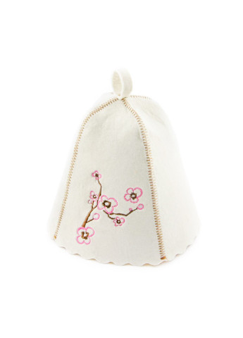 Банна шапка незамінний аксесуар при відвідуванні лазні та сауни. Окрім оригінального зовнішнього вигляду або веселого слогана вишитого на ній шапка виконує дуже важливу роль – вона береже голову від перегріву. Ми рекомендуємо підходити до вибору шапки для лазні і сауни не менш відповідально, ніж при виборі іншого головного убору. Банна шапка з вишивкою "Цвітуча сакура" виготовлена зі штучного фетру. Колір фетру білий. Модель має зверху петельку, яка дозволяє повісити шапку на гачок. Догляд за виробом: У пральній машинці вироби з фетру потрібно прати в режимі вовни, можна віджимати в делікатному режимі віджиму. Температура води не повинна перевищувати 40 градусів, особливо якщо кольорові вироби. Сушити потрібно виріб у розгорнутому вигляді