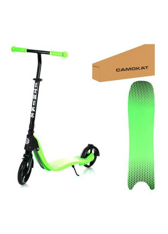 Матеріал: алюміній, поліуретан (PU). Розмір платформи: 53х11 см. Діаметр коліс: 200 мм. Підшипник: АВЕС-7. Колір: чорний жовтий. Призначення: для активного відпочинку та фітнесу. Призначення Самокат – це найпростіший транспортний засіб, що приводиться в дію м'язовою силою «водія» і призначене переважно для розваги. При цьому, крім позитивних емоцій, які отримує будь-який користувач, незалежно від віку та досвіду, катання на самокаті дозволяє зміцнити здоров'я. Навіть неспішні поїздки включають у роботу різні групи м'язів, надають корисне навантаження на серцево-судинну систему та розвивають почуття рівноваги. Кататися на самокаті можна на будь-якій рівній поверхні. Опис Рама цього самокату виготовлена з міцного алюмінію (металу) промислового класу. Вона встановлена на колеса зі стійкого до зносу поліуретану, діаметр яких (200 мм) дозволяє розвивати досить пристойну швидкість. Одночасно низько посаджена дека допомагає зберігати рівновагу, а амортизатори на передній та задній вилці знижують вібрацію та забезпечують плавність ходу. Для екстреної зупинки служить гальмо п'яти (step-on brake), розташоване над заднім колесом. Механізм складання й опорна ніжка, що відкидається, значно спрощують експлуатацію самоката. Переваги: Надійна конструкція забезпечує тривале, комфортне використання самоката. Завдяки регульованій висоті керма підходить користувачам різного зростання. Великі колеса та амортизатори приховують вібрацію від нерівностей дороги. Характеристики Вид Самокати Тип Міські Вага користувача100 кг Складна конструкція Зі складною конструкцією Гальмо Ножний Кількість коліс 2 шт Матеріал коліс Поліуретан (PU) Матеріал колісних дисків Алюміній Країна виробник Китай