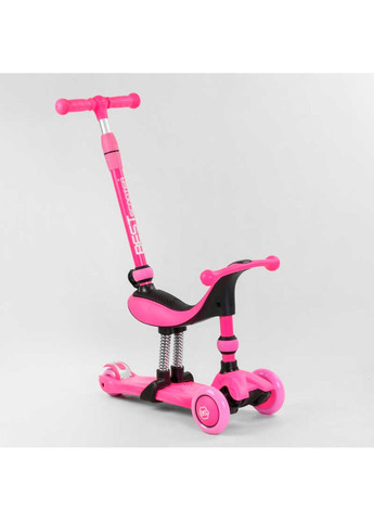 Функціональний триколісний самокат Best Scooter з сидінням і батьківською ручкою та амортизаторами. Призначений для дітей від року і старше. Батьківська ручка легко переставляється наперед і стає кермом триколісного самоката з можливість регулювання по висоті на 3 положення, який підходить дітям від 2-х до 6-ти років. Матеріали використані при виробництві даного самоката на дуже високому рівні! Це й не дивно, оскільки, він розрахований на використання в кілька років з ростом дитини. Колеса самоката, зі світлом, зроблені з поліуретану (PU) що забезпечує мяке і безшумне катання. Також, передні колеса світяться під час їзди. Діаметр передніх коліс: 120 мм. Характеристики: Висота керма регулюється в трьох положеннях: від 61 см до 75 см; Висота батьківської ручки: від 80 см до 93 см; Навантаження на сидіння до 25 кг; Навантаження на самокат 70 кг; Розміри платформи: - довжина 36 см; - ширина 12,5 см; Платформа має антиковзаюче покриття; Поворот здійснюється нахилом керма вправо-вліво; Розмір передніх коліс: діаметр 12 см, ширина колеса 3 см; Розмір заднього колеса: діаметр 8 см; ширина колеса 3 см; Матеріал коліс: поліуретан (PU) зі світлом; Підшипник ABEC-7; Ножні гальма (step-on-brake) розташований над заднім колесом; Вага самоката 2,8 кг.
