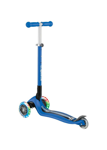 Самокат Globber (Глоббер) Elite Prime із революційною системою складання. Основні переваги: самокат оснащений яскравими колесами та передньою платформою, що світяться - це безмежні веселощі для вашої дитини ідеально підходить для розвитку рівноваги та навчання їзді вашого малюка має кольорове анодоване V-подібне кермо, яке регулюється на чотири рівні висоти і легко адаптується до росту дитини триколісний самокат більш стійкий, а завдяки системі блокування повороту передніх коліс ваша дитина зможе швидше і безпечніше навчитися пересуватися самокатом управління самокатом відбувається за принципом балансування - при нахилі тіла дитини вліво або вправо нахиляється кермо самокат змінює напрямок руху Характеристики Максимальне навантаження: 50 кг Зріст користувача: 75-130 см Підшипники: ABEC-5 Регулювання висоти керма: від 71.5 до 86,5 см Вага: 3 кг Розмір у зібраному вигляді: 71,5-86,5х56х37,5 см Виробник Globber, Китай. Рекомендовано для дітей віком від 3 років.