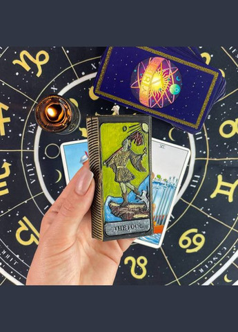 Магія та Чари як ключ до гармонії та радості 78 магічних карток з інструкцієюРозмір 12х6.5 см "Язичеське Таро" (Pagan Tarot) більш відоме як "Таро Білої й чорної магії", виготовлене за мотивами робіт американської відьми Джини Пейс, має незвичайну силу й оккультурну глибину. Біла магія відрізняється від Чорної магії поставленим завданням: ззивання — у першому випадку, і руйнування — у другому. Вперше ця колода з'явилася на прилавках езотеричних магазинів 2002 року. Автор ідеї - Джина М. Пейс, художники, які працювали над створенням ілюстрацій Таро Білої й Чорної Магії - Лука Раймондо, Крістіан Спадоні. "Язичеське Таро Чорне та Білої Магії" — колода унікальна. Вона рясніє магічною символікою, прекрасними природними пейзажами, яким велика увага приділяється в Вікканської традиції, сюжетними сценами, що показують ступені географічного пошуку героїні. Старші Аркани колоди зберігають свої назви, мастити — теж, а ось придворні - зазнали низки змін. Замість звичайних пажів, Лицарів, Королев, Королев у колоді з'явилися парфуми стихій і три ступені магічного присвягання, яке можна порівняти з процесом самопізнання особистості: спочатку йде безликий Елементаль — дух стихії, за ним Маг — Новачок, який зі часом перетворюється на ініціативи, а потім — на Старого або Майстра. Дуже незвичайний, але водночас практичний, грамотний підхід до фігурних карток. Важливий посил, який несуть ці картки: бути відьмою — не означає сушити на балконі жаб і жити далеко від цивілізації на болоті, адже цілком можна впустити магію у своє повсякденне життя. Але автори вважають "Язичеське Таро" не як "магічний" інструмент, а передусім як помічника для всіх, хто хоче, самовдосконалюючись, пройти всіма сходинками до істинної майстерності, і, проживаючи на цьому шляху трансформації, знайти гармонію своєї душі з навколишнім світом. На ілюстраціях карт "Таро Білої й чорної Магії" ви знайдете 66пі символи, повсякденні предмети та дії. Але по суті всі Аркани можна об'єднати в один сенсовий ряд — це духовний шлях юної сучасної відьми. Вона вчиться гармонійно поєднувати звичайне повсякденне життя з магічною практикою. Чи виходить це в неї? Іноді — так, іноді — не дуже, але навіть досконалі помилки обертаються для нашої героїні корисним досвідом. З одного боку, вона — звичайна дівчина, яка ходить по магазинах, зустрічається з друзями, співпрацює із сім'єю, наводить лад у домі, але з іншого — вона завжди знаходить час для медитації, магічних ритуалів, зустрічей зі своїми соратниками з полонеєм традиції. На її шляху трапляються різні люди: добрі та не дуже, що надихають і викликають відторгнення, але все це лише сприяє пошуку свого істинного "я". Ключову роль автори, що пропонують оригінальний системний підхід до вивчення структури колоди, відводять Мапам Двора. Саме вони — від безликого елементалю до повністю складаного Майстра кожної з чотирьох стихій — і є маркери якісних змін особистості, що входить на шлях самопізнання. Колода Таро "Білої й чорної магії" спеціально створена для практичного застосування в сучасному світі. Хоча дані Таро не блищать яскравістю колірної гами, але завдяки цьому ніщо не відвертає нас від його незвичайної оккультурної сили. Таро "Білої та чорної магії", поєднуючи в собі знання, накопичені давнімикопиченими, і досягнення езотеризму нашого часу, малюють пов