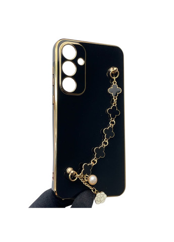Чохол для телефона Samsung Galaxy A55 5G (SM-A556B) жіночій із ремінцем з прикрасами та золотою окантовкою на самсунг а55 5г чорний Преміальний чохол з вишуканою золотою окантовкою та елегантним декоративним ремінцем на руку — стильне поєднання захисту та ювелірного дизайну. Прикрашений підвісками у формі конюшин, перлиною та металевими елементами, що додають образу унікальності. Виготовлений з міцного та гнучкого TPU, забезпечує надійний захист від ударів, подряпин і сколів, не обтяжуючи смартфон. Щільно прилягає до корпусу та підтримує бездротову зарядку. Ідеальний варіант як подарунок для жінки — підійде для дівчини, подруги, дружини, мами або сестри. Гарно виглядає у подарунковому пакуванні та буде доречним на 8 березня, День народження, День святого Валентина, Новий рік та інші свята. Характеристики: Матеріал: термополіуретан (TPU) Декор: знімний ремінець з підвісками (метал + акрил) Призначення: захист задньої панелі та бічних граней Підтримує бездротову зарядку: Особливості: не ковзає в руці, зручно тримати за ремінець