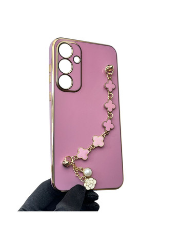 Чохол для телефона Samsung Galaxy A55 5G (SM-A556B) жіночій із ремінцем з прикрасами та золотою окантовкою на самсунг а55 5г чорничний Преміальний чохол з вишуканою золотою окантовкою та елегантним декоративним ремінцем на руку — стильне поєднання захисту та ювелірного дизайну. Прикрашений підвісками у формі конюшин, перлиною та металевими елементами, що додають образу унікальності. Виготовлений з міцного та гнучкого TPU, забезпечує надійний захист від ударів, подряпин і сколів, не обтяжуючи смартфон. Щільно прилягає до корпусу та підтримує бездротову зарядку. Ідеальний варіант як подарунок для жінки — підійде для дівчини, подруги, дружини, мами або сестри. Гарно виглядає у подарунковому пакуванні та буде доречним на 8 березня, День народження, День святого Валентина, Новий рік та інші свята. Характеристики: Матеріал: термополіуретан (TPU) Декор: знімний ремінець з підвісками (метал + акрил) Призначення: захист задньої панелі та бічних граней Підтримує бездротову зарядку: Особливості: не ковзає в руці, зручно тримати за ремінець