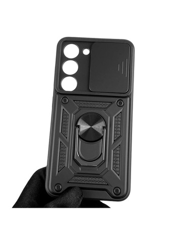 Чохол для Samsung Galaxy S23 Plus (SM-S916B) броньований з кільцем зі шторкою на самсунг с23 плюс чорний Цей тип чохла — втілення сучасного стилю та надійного захисту для вашого телефона. У ньому використовується комбінація високоякісного силікону та міцного пластику, що забезпечує надійну амортизацію та захист від ударів, подряпин і пилу. Характеристики: Матеріал: Протиударний силікон, пластик, метал Дизайн: Матовий, стилізований виступами та заглибленнями Захисна шторка для камери: Забезпечує захист камери від ударів Кільце-тримач: Використовується як підставка та обертається на 360 градусів Залізна кругла пластина: Використовується для автомобільних магнітних тримачів Посилена ударостійкість Чохол має посилену ударостійкість, захисну шторку для камери, що запобігає пошкодженню об'єктивів, а також кільце-тримач, яке можна використовувати також і як підставку за потреби. Чохол розроблений з урахуванням зручності використання: він легко надівається і знімається, а також забезпечує повний доступ до всіх портів і функціональних елементів вашого телефона. Купуйте цей чохол зараз і дайте своєму смартфону стильне та надійне оновлення.