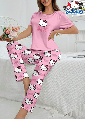 Комплект одягу Sanrio Hello Kitty з 2 предметів. У комплект входить футболка з круглим вирізом, короткими рукавами та штани. Тканина трохи тягнеться. Забезпечує стандартну посадку.