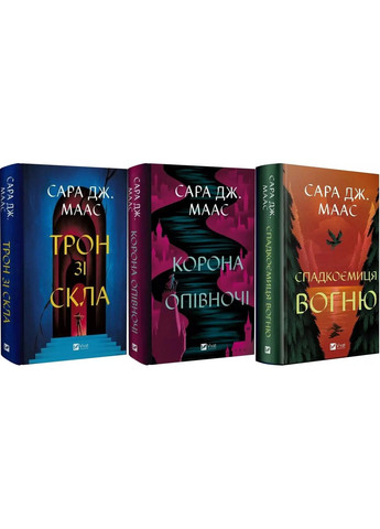 Опис: Трон зі скла. Книга 1 Найбезстрашнішій з усіх асасинок Адарлену лише вісімнадцять. Селена — видатна вбивця, здатна вижити в соляних копальнях, де вона тяжко гарувала, і спробувати втекти з місця, з якого ще нікому не вдалось вибратися живим. В обмін на свободу король дає їй змогу побути його вірною оборонницею, але для цього треба виграти змагання. Злодії, асасини та воїни з усієї країни зійдуться в поєдинку, щоб здобути почесті, непогану платню та шанс стати вільними. Але в Селени значна перевага: вона неначе має магію в крові й попри всі закони Адарлену має намір цим скористатися, адже треба стражденним нарешті дати відсіч своїм поневолювачам. Коли раптом суперники починають один по одному помирати страшною смертю, змагання Селени за свободу перетворюється на борню за виживання, у якій вона має подолати непізнане зло. Трон зі скла. Книга 2. Корона опівночі Найбезстрашнішій з усіх асасинок Адарлену лише вісімнадцять. Селена — видатна вбивця, якій вдалося виграти небезпечні змагання та здобути титул королівської оборонниці. Утім, їй обіцяли ще й таку омріяну свободу, а натомість дівчина не здатна навіть дати волю своєму серцю. Більшого тягаря в неї на душі ще не бувало: якщо вона холоднокровно вб’є аж такого ненависного їй ворога — це означатиме смертельний вирок для всього найдорожчого в її житті. Здавалося б, вибір простий, адже вона вбивця. Та чи має серце вбивця? У всякому разі, Селена буде вирішувати, за що битися: за любов, за виживання чи за майбутнє королівства. Трон зі скла. Книга 3. Спадкоємиця вогню Селена Сардотін постає з попелу, щоб сяяти яскравіше, ніж раніше. Селена пережила смертельні змагання, втрату найближчих і розбите серце, але втрималася на рівних. Утім вона далі платить за це дорогу ціну й цього разу вирушає до нових земель, щоб віч-на-віч стикнутися там із найтемнішою правдою… Правдою про свою спадщину, яка може назавжди змінити її життя — і майбутнє. Тим часом на обрії вже з’являються жорстокі та жахливі сили, які прагнуть безмежного володарювання. Чи не забракне Селені снаги не лише боротися зі своїми внутрішніми демонами, а й протистояти злу, яке ось-ось вирветься назовні? Трон зі скла. Книга 4. Королева тіней Коли в Селени Сардотін забрали всіх, кого вона любила, їй залишилося єдине: вирушити назад у загарбану злом імперію та помститися тіням свого минулого — заради рідних людей і втраченої домівки. Нарешті прийняла себе як є — вона Аеліна Ґалатінія, королева Террасену. І досі здатна посісти свій трон, якщо не здасться без бою. Як на лихо, на цьому тяжкому шляху одне за одним постають добре знайомі та нові обличчя, тож їй ще належить розбиратися, хто з них ворог, а хто вартує довіри. Але попри все вона боротиметься: за кузена — воїна, що ладен за неї померти, і за друга — юнака, якого полонила сила пітьми. Вона боротиметься за рідний народ, пригнічений жорстоким королем, адже ці люди сподіваються на тріумфальне повернення своєї втраченої королеви. Трон зі скла. Книга 0. Клинок асасинки Книга «Клинок асасинки» — це збірка повістей, що веде стежками передісторії Селени Сардотін, головної героїні культового фентезійного циклу «Трон зі скла» від американської письменниці Сарі Маас. У кожній із п’яти розповідей наймана вбивця береться за виконання місій Гільдії, маючи в озброєнні тільки непохитну впертість 