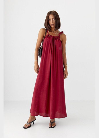 Цей чарівний сарафан зроблений з надзвичайно легкого та комфортного віскозного штапелю, що робить його ідеальним вибором для літніх днів. Його дизайн підкреслений облягаючим верхом та повітряною спідницею, яка додає жіночності та елегантності. Він ідеально підходить як для повсякденного використання, так і для вечірніх подій. Верх сарафана оздоблений резинками, які додають текстури та цікавості до цього вбрання. Ці резинки не лише створюють цікавий вигляд, але також забезпечують додаткову підтримку верху сарафана, забезпечуючи комфорт та вільність рухів. Вони дозволяють сарафану ідеально сидіти на фігурі, підкреслюючи її грацію і жіночність.