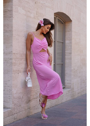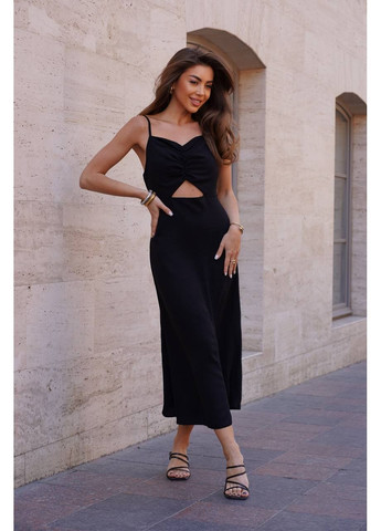Літній сарафан виконаний з крепдешина з розкльошеним асиметричним вільним кроєм та заокругленими нижніми зрізами. Виріб без рукавів, міді довжини з зручними бічними кишенями і заглибленою горловиною-човником. Склад: 79% поліестер, 21% еластан. Напівобхват: Груди: S (51), M (51), L (51), XL (54), XXL (56), 3XL (58), 4XL (61), 5XL (64), Талія: S (54), M (54), L (57), XL (58), XXL (62), 3XL (64), 4XL (66), 5XL (68), Стегна: S (62), M (64), L (66), XL (67), XXL (69), 3XL (73), 4XL (75), 5XL (72-78*), Довжина виробу - 109-117*, Тканина: Низької еластичності.