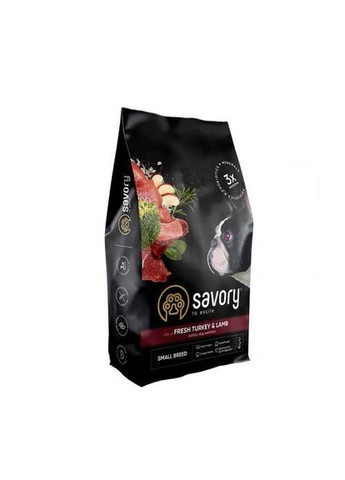 Корм класу холістик для дорослих собак малих порід вагою до 10 кг. Повнораціонний сухий корм для собак малих порід Savory пробудить у вашого улюбленця ту життєву енергію, про яку він навіть сам ще не знав. Ексклюзивна рецептура корму була розроблена досвідченими європейськими спеціалістами з харчування домашніх улюбленців. Використовуючи холістичний підхід, вдалося створити біологічно відповідний, здоровий раціон для собак, який є корисним і смачним настільки, що лапки оближеш. Поєднання добірних натуральних інгредієнтів дає можливість піклуватися про здоров’я чотирилапого, а вишуканий смак – дарувати йому насолоду від щоденного споживання корму Savory. Сухий корм для собак малих порід Savory містить 53% якісного м’яса індички та ягняти, суперфуди, яблука, броколі, шпинат. Ці компоненти створені природою для невеличкого, але дуже активного песика. Гранули корму розроблені з урахуванням анатомічних особливостей собак малих порід. Переваги: Цінне джерело білків – м'ясо індички та ягняти. Унікальний комплекс пребіотиків, пробіотиків і мінералів для зміцнення імунітету. Підтримання оптимальної ваги – рівномірний набір м’язової маси без відкладання жиру. Суперфуди для гармонійного розвитку та комфорту травлення. Містить хондропротектори для захисту суглобів. Збалансований низькозерновий склад. Маленька крокета для зручного жування. Без барвників і ароматизаторів. Особливості: Індичка - високобілкове дієтичне м`ясо, яке легко засвоюється і має у своєму складі життєво важливі мінерали: селен, цинк, натрій, фосфор, магній, калій та вітаміни групи B. Ягня є найбільш гіпоалергенним та ніжним джерелом білка, легко засвоюється організмом. Не містить холестерину, багате на вітаміни, мікроелементи та лецитин. Яблука є джерелом пребіотиків (олігосахаридів), що покращують здоров'я мікрофлори кишечника. Лососева олія насичена жирними кислотами Омега-3, які підвищують загальний імунітет і надають блиску шерсті. Білий рис - дієтичний компонент зі сприятливою дією на травну систему. Броколі – це розчинна клітковина для профілактики діареї та джерело вітаміну С для активації імунітету. Кокосове молоко має інтенсивну протизапальну та антибактеріальну дію. Покращує роботу ШКТ, стан шкіри та серця, підтримує оптимальну кондицію організму. Насіння чіа – суперфуд з високою концентрацією кальцію, антиоксидантів та ненасичених жирних кислот для правильного функціонування організму тварини. Насіння кіноа містить калій, рутин, мінеральні солі, каротин, ефірні масла, а також важливі для роботи шлунково-кишкового тракту пектин і клітковину. Помідори є джерелом антиоксидантів, які мають інтенсивний протизапальний ефект, покращують стан шкіри, роботу мозку і захищають серце. Шпинат – джерело вітамінів групи В. Знижує процеси окислення в організмі, нормалізує артеріальний тиск. Корм Savory – корисне може бути смачним! Склад: дегідратована індичка (33%), рис, індичка свіжа (15%), курячий жир, дегідратована ягнятина (5%), горох, сушені яблука, лососеве масло, гідролізована куряча печінка, дріжджі, сушена броколі (1%), сухе кокосове молоко (0,5%), амарант (0,5%), насіння чіа (0,5%), насіння кіноа (0,5%), сушені томати (0,5%), шпинат сушений (0,5%), горохове борошно, куркума сушена (0,2%), хондропротектори глюкозамін (0,025%) та хондроїтин сульфат (0,015%), пребіотики мананолігосахариди (MOS) (