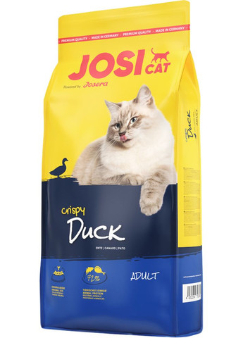 JosiCat Crispy Duck ЙозіКет Кріспі Дак (Качка) Делікатес із смачною качкою Вишуканий корм з апетитним м'ясом качки Вишукане меню з добірними інгредієнтами Проводиться в Німеччині та проходить ретельну перевірку у власній акредитованій лабораторії. Корм містить високоякісні, здорові та натуральні інгредієнти, не генетично модифіковані. БЕЗ додавання консервантів, штучних барвників та ароматизаторів. Однак добре підходить і для кішок, що живуть вдома і для тих, хто гуляє у дворі Без додавання сої, цукру чи молочних продуктів Однак добре підходить і для кішок, які живуть вдома і для тих, хто гуляє на подвір'ї JosiCat Crispy Duck смачна їжа для котів, які люблять качку. Корм добре підходить для котів із нормальною або низькою активністю. Повнораційний сухий корм для дорослих кішок. Складові: Зернові; М'ясо та субпродукти тваринного походження (білок качки, сушений 4.0%); субпродукти рослинного походження; Риба та субпродукти рибного походження; Олії та жири; Мінерали. Аналітичні складові: Протеїн % 27.0 Жир % 9.0 Сира клітковина % 2.7 Сира зола % 7.3 Кальцій % 1.55 Фосфор % 1.15 Таурін Мг/кг 1000 Обмінна енергія: МДж/кг* 14.6 ккал/кг* 3494 * Обчислення згідно з EN 16967 Харчові добавки в 1 кг: Вітамін A М.О./кг 15000 Вітамін D3 М.О./кг 1500 Вітамін E Мг/кг 100 Вітамін B1 Мг/кг 10 Вітамін B2 Мг/кг 15 Вітамін B6 Мг/кг 15 Вітамін B12 Мкг/кг 90 Кальцій-D-Пантетонат Мг/кг 40 Нікотинова кислота Мг/кг 70 Фолієва кислота Мг/кг 4 Біотин Мг/кг 250 Харчові добавки в 1 кг: Залізо (сульфат заліза II, моногідрат) Мг/кг 135 Цинк (гліциновий хелат цинку, гідрат) Мг/кг 120 Марганець (оксид марганцю II) Мг/кг 14 Мідь (гліциновий хелат міді, гідрат) Мг/кг 16 Йод (йодат кальцію) Мг/кг 1.80 Селен (селеніт натрію) Мг/кг 0.25 Технологічні добавки: Антиоксиданти