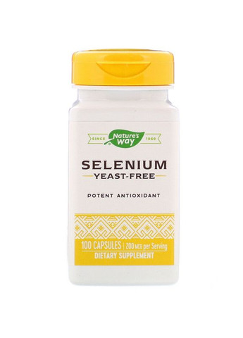 Selenium від Nature's Way — це добавка, що містить 200 мкг селену в кожній капсулі, призначена для підтримки антиоксидантного захисту організму та нормальної функції імунної системи. Склад: Порція: 1 капсула В одній порції % від добової потреби** 2000 калорій.
