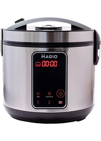 Мультиварка MAGIO MG-426 з сенсорним керуванням 5л 24 програми з функцією відкладеного старту 900Вт Сірий - функція підтримки температури до 24год. Маючи сенсорне управління та сучасні технології, вона замінить цілий арсенал кухонних пристроїв – від пароварки до йогуртниці. Переваги: Універсальність: 24 програми для будь-якої страви, включаючи режим «Мульти-шеф» Надійна чаша з керамічним покриттям — стійка до пригоряння і легко миється Комфорт: відкладений старт, підтримка тепла та сенсорне керування ємності для йогурту, шнур з вимикачем та інструкція Характеристики: Потужність: 900 Вт Об'єм чаші: 5 л (фактичний ~4–4,5 л) Кількість програм: 24 автоматичних режиму (включаючи «Мульти-шеф») Тип керування: сенсорне з LED-дисплеєм Чаша: а ТЕН Функціонал: смаження, гасіння, запікання, пароварка, йогурт, мультикухар, фритюр, паста, суп, плов та ін. Відкладений старт: до 24 год Підтримка тепла: до 24 год Матеріал корпусу: метал + пластик, колір — нержавіюча сталь Габарити: 28 × 26 × 27 см; вага 3,73 кг Живлення: 220 В, 50 Гц 5 л) Знімний паровий кошик Мірний стакан Ложка для перемішування Ложка для рису Баночки для йогурту (у комплекті 5 шт.) Мережевий кабель з вимикачем Посібник користувача Гарантійний талон